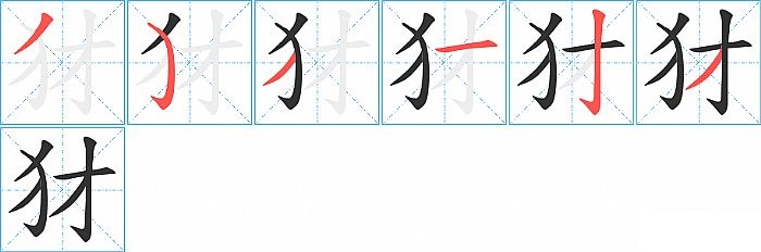 犲是左右结构,犲的部首是“犭”,部外笔画3画,总笔画6画,犲的笔画顺序是“撇、弯钩、撇、横、竖钩、撇”。