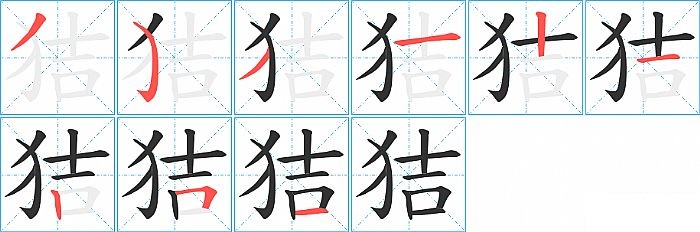 《狤》字的笔顺分步演示图(一笔一画写汉字)