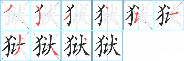 《狱》字的笔顺分步演示图(一笔一画写汉字)