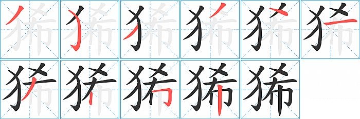 狶是左右结构,狶的部首是“犭”,部外笔画7画,总笔画10画,狶的笔画顺序是“撇、弯钩、撇、撇、点、横、撇、竖、横折钩、竖”。看看“狶”字什么意思 >>
