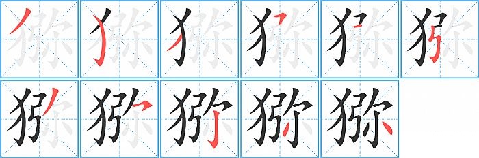 猕是左中右结构,猕的部首是“犭”,部外笔画8画,总笔画11画,猕的笔画顺序是“撇、弯钩、撇、横折、横、竖折折钩、撇、横撇/横钩、竖钩、撇、点”。看看“猕”字什么意思 >>