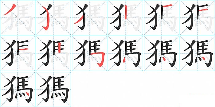 獁是左右结构,獁的部首是“犭”,部外笔画10画,总笔画13画,獁的笔画顺序是“撇、弯钩、撇、横、竖、横、横、竖、横折钩、点、点、点、点”。看看“獁”字什么意思 >>