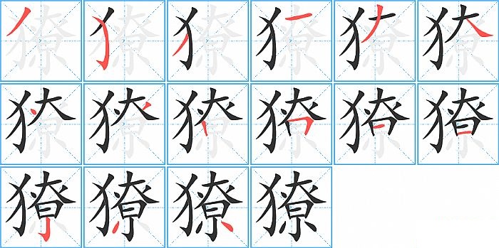 獠是左右结构,獠的部首是“犭”,部外笔画12画,总笔画15画,獠的笔画顺序是“撇、弯钩、撇、横、撇、捺、点、撇、竖、横折、横、横、竖钩、撇、点”。看看“獠”字什么意思 >>