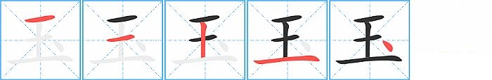 《玉》字的笔顺分步演示图(一笔一画写汉字)