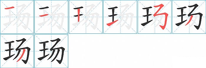 玚是左右结构,玚的部首是“王”,部外笔画3画,总笔画7画,玚的笔画顺序是“横、横、竖、提、横折折折钩/横撇弯钩、撇、撇”。