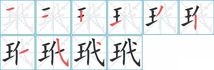 《玳》字的笔顺分步演示图(一笔一画写汉字)