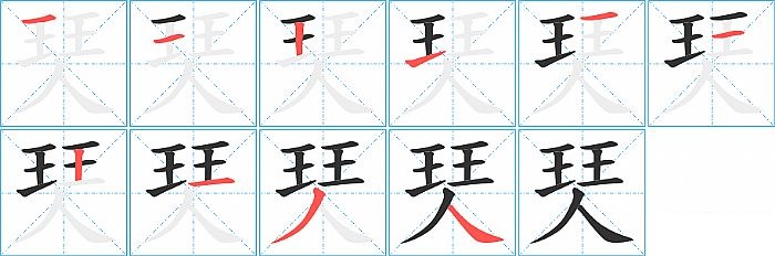 《珡》字的笔顺分步演示图(一笔一画写汉字)