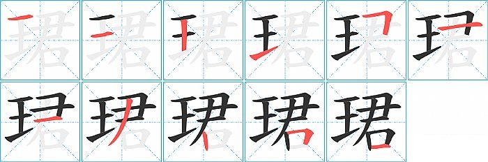 珺是左右结构,珺的部首是“王”,部外笔画7画,总笔画11画,珺的笔画顺序是“横、横、竖、提、横折、横、横、撇、竖、横折、横”。看看“珺”字什么意思 >>