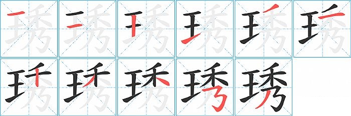 琇是左右结构,琇的部首是“王”,部外笔画7画,总笔画11画,琇的笔画顺序是“横、横、竖、提、撇、横、竖、撇、捺、横折折折钩/横撇弯钩、撇”。看看“琇”字什么意思 >>