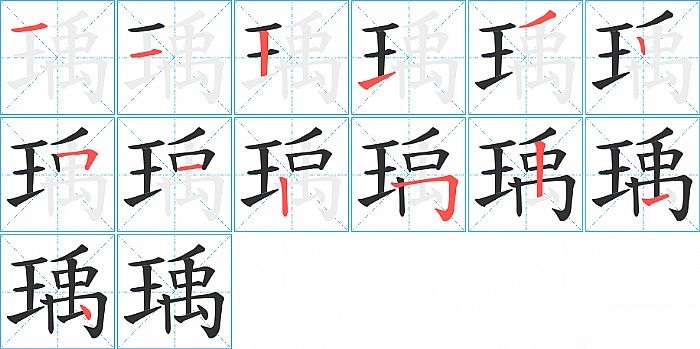 瑀是左右结构,瑀的部首是“王”,部外笔画9画,总笔画13画,瑀的笔画顺序是“横、横、竖、提、撇、竖、横折、横、竖、横折钩、竖、提、点”。看看“瑀”字什么意思 >>