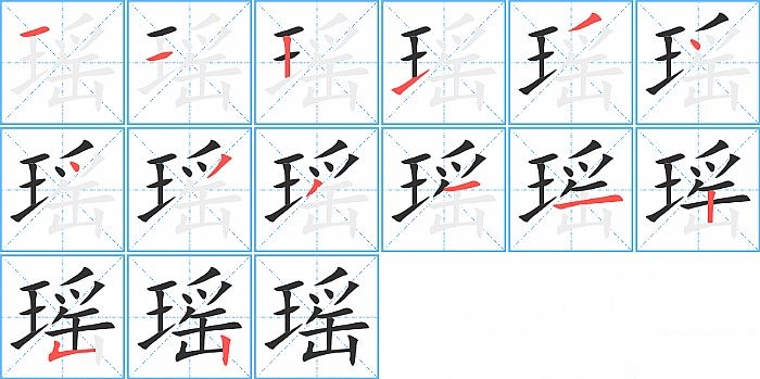 瑶是左右结构,瑶的部首是“王”,部外笔画10画,总笔画14画,瑶的笔画顺序是“横、横、竖、提、撇、点、点、撇、撇、横、横、竖、竖折/竖弯、竖”。看看“瑶”字什么意思 >>