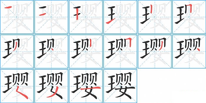 璎是左右结构,璎的部首是“王”,部外笔画11画,总笔画15画,璎的笔画顺序是“横、横、竖、提、竖、横折、撇、点、竖、横折、撇、点、撇点、撇、横”。看看“璎”字什么意思 >>