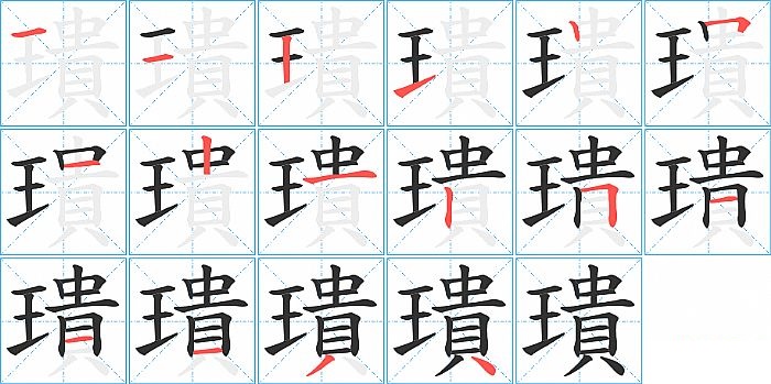璝是左右结构,璝的部首是“王”,部外笔画12画,总笔画16画,璝的笔画顺序是“横、横、竖、提、竖、横折、横、竖、横、竖、横折、横、横、横、撇、点”。看看“璝”字什么意思 >>