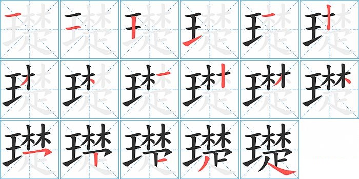 璴是左右结构,璴的部首是“王”,部外笔画13画,总笔画17画,璴的笔画顺序是“横、横、竖、提、横、竖、撇、点、横、竖、撇、点、横撇/横钩、竖、横、撇、捺”。看看“璴”字什么意思 >>