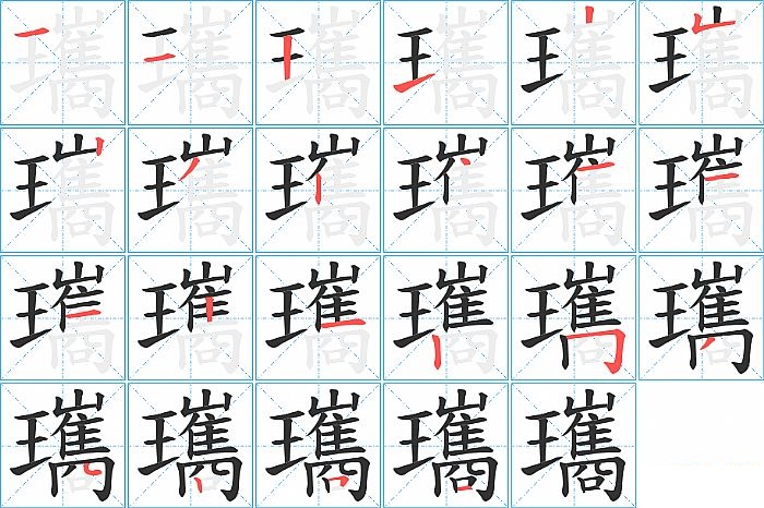 瓗是左右结构,瓗的部首是“王”,部外笔画18画,总笔画22画,瓗的笔画顺序是“横、横、竖、提、竖、竖折/竖弯、竖、撇、竖、点、横、横、横、竖、横、竖、横折钩、撇、点、竖、横折、横”。看看“瓗”字什么意思 >>
