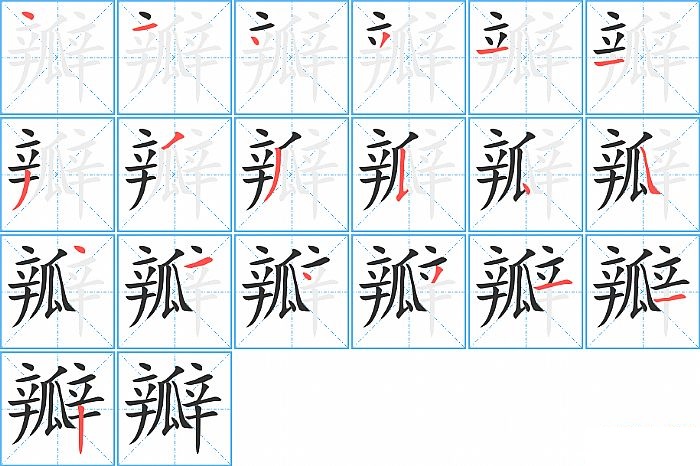 瓣是左中右结构,瓣的部首是“瓜”,部外笔画14画,总笔画19画,瓣的笔画顺序是“点、横、点、撇、横、横、撇、撇、撇、竖提、点、捺、点、横、点、撇、横、横、竖”。看看“瓣”字什么意思 >>