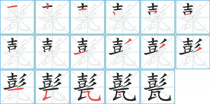 横、竖、横、竖、横折、横、点、撇、提、撇、撇、撇、横、竖提、横折弯钩/横斜钩、点