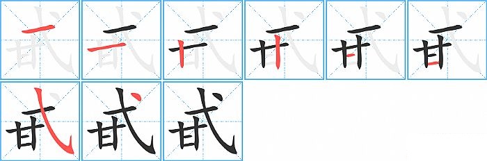 甙是半包围结构,甙的部首是“甘”,部外笔画3画,总笔画8画,甙的笔画顺序是“横、横、竖、竖、横、横、斜钩、点”。