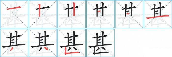 《甚》字的笔顺分步演示图(一笔一画写汉字)