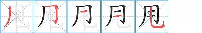 甩是单一结构,甩的部首是“用”,部外笔画0画,总笔画5画,甩的笔画顺序是“撇、横折钩、横、横、竖弯钩”。