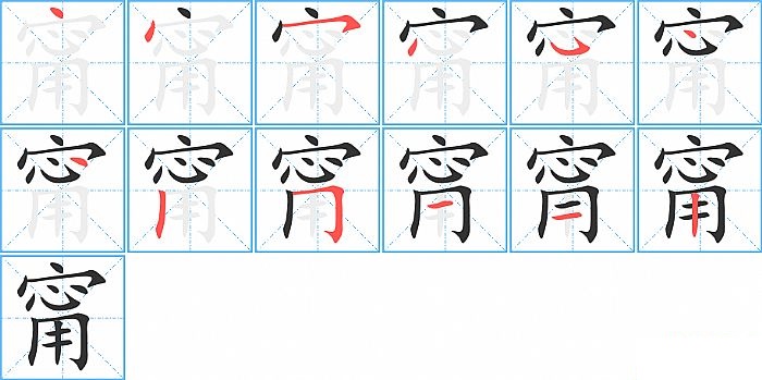 点、点、横撇/横钩、点、斜钩、点、点、竖、横折钩、横、横、竖