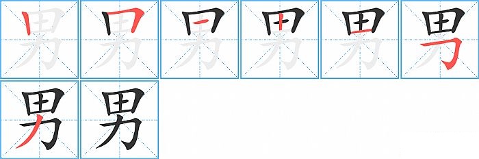 《男》字的笔顺分步演示图(一笔一画写汉字)