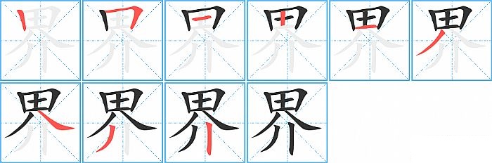 《界》字的笔顺分步演示图(一笔一画写汉字)