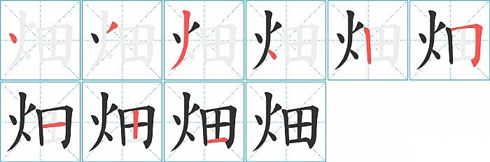 《畑》字的笔顺分步演示图(一笔一画写汉字)