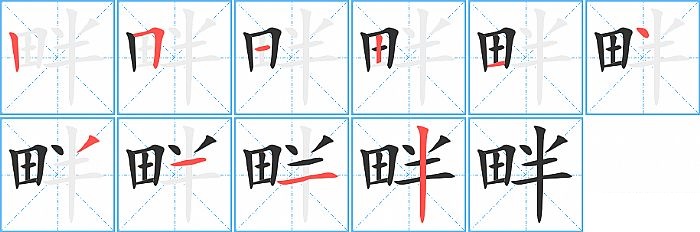 《畔》字的笔顺分步演示图(一笔一画写汉字)