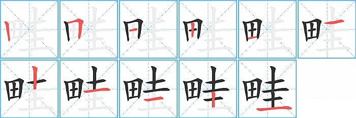 畦是左右结构,畦的部首是“田”,部外笔画6画,总笔画11画,畦的笔画顺序是“竖、横折、横、竖、横、横、竖、横、横、竖、横”。看看“畦”字什么意思 >>