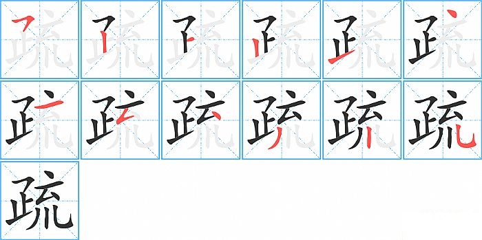 疏是左右结构,疏的部首是“疋”,部外笔画7画,总笔画12画,疏的笔画顺序是“横撇/横钩、竖、横、竖、提、点、横、撇折、点、撇、竖、竖弯钩”。看看“疏”字什么意思 >>