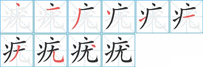 《疣》字的笔顺分步演示图(一笔一画写汉字)