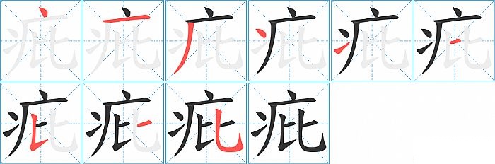《疪》字的笔顺分步演示图(一笔一画写汉字)