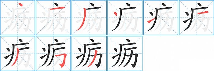《疬》字的笔顺分步演示图(一笔一画写汉字)