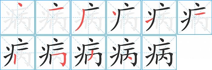 《病》字的笔顺分步演示图(一笔一画写汉字)