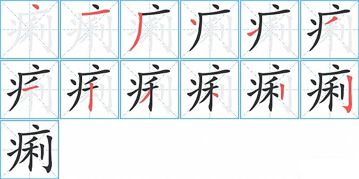 痢是半包围结构,痢的部首是“疒”,部外笔画7画,总笔画12画,痢的笔画顺序是“点、横、撇、点、提、撇、横、竖、撇、点、竖、竖钩”。看看“痢”字什么意思 >>