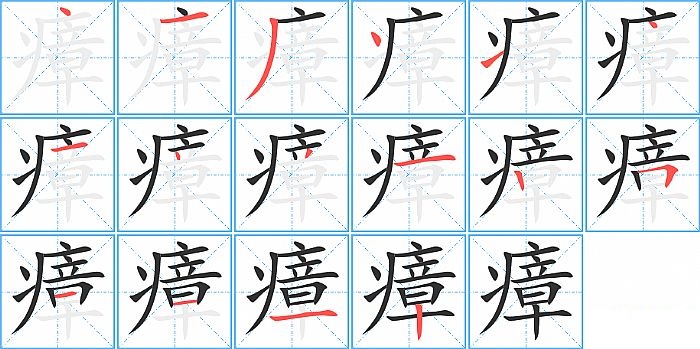 瘴是半包围结构,瘴的部首是“疒”,部外笔画11画,总笔画16画,瘴的笔画顺序是“点、横、撇、点、提、点、横、点、撇、横、竖、横折、横、横、横、竖”。看看“瘴”字什么意思 >>