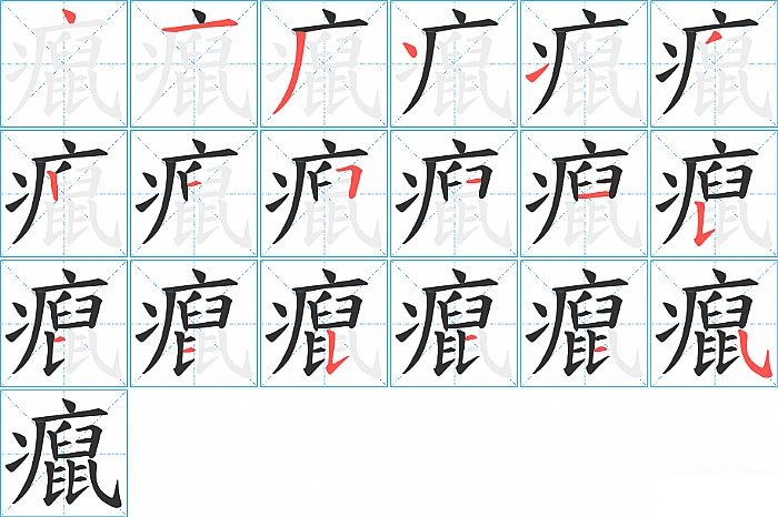 癙是左上包围结构,癙的部首是“疒”,部外笔画13画,总笔画18画,癙的笔画顺序是“点、横、撇、点、提、撇、竖、横、横折、横、横、竖提、点、点、竖提、点、点、斜钩”。看看“癙”字什么意思 >>