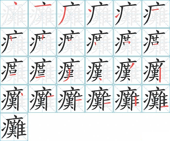 癱是左上包围结构,癱的部首是“疒”,部外笔画19画,总笔画24画,癱的笔画顺序是“点、横、撇、点、提、横、竖、竖、横、竖、横折、横、横、横、撇、点、撇、竖、点、横、横、横、竖、横”。看看“癱”字什么意思 >>