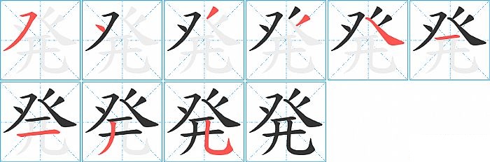 発是上下结构,発的部首是“癶”,部外笔画4画,总笔画9画,発的笔画顺序是“横撇/横钩、点、撇、撇、捺、横、横、撇、竖弯钩”。看看“発”字什么意思 >>
