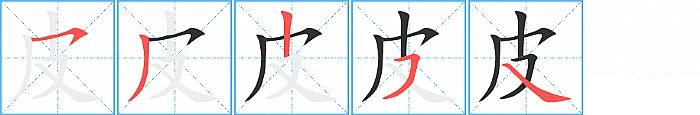 《皮》字的笔顺分步演示图(一笔一画写汉字)