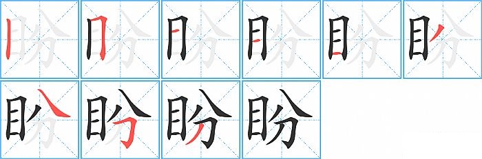 《盼》字的笔顺分步演示图(一笔一画写汉字)
