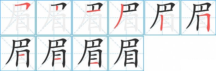《眉》字的笔顺分步演示图(一笔一画写汉字)