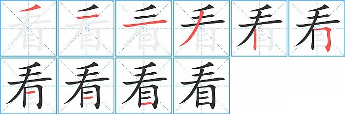 《看》字的笔顺分步演示图(一笔一画写汉字)