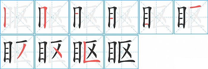 《眍》字的笔顺分步演示图(一笔一画写汉字)
