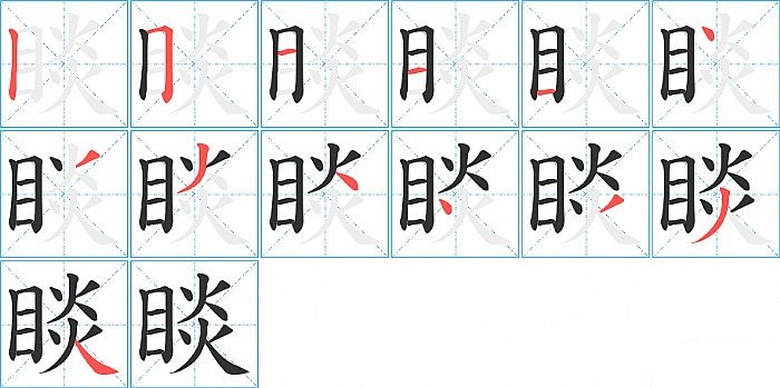 睒是左右结构,睒的部首是“目”,部外笔画8画,总笔画13画,睒的笔画顺序是“竖、横折、横、横、横、点、撇、撇、点、点、撇、撇、捺”。看看“睒”字什么意思 >>