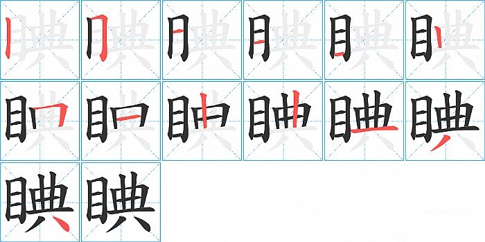睓是左右结构,睓的部首是“目”,部外笔画8画,总笔画13画,睓的笔画顺序是“竖、横折、横、横、横、竖、横折、横、竖、竖、横、撇、点”。看看“睓”字什么意思 >>