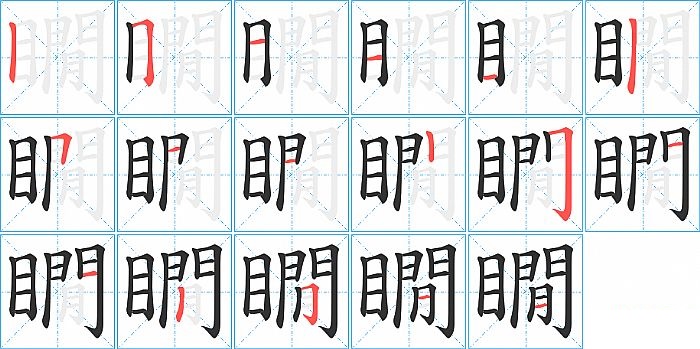 瞯是左右结构,瞯的部首是“目”,部外笔画12画,总笔画17画,瞯的笔画顺序是“竖、横折、横、横、横、横折、横、横、竖、竖、横折钩、横、横、撇、横折钩、横、横”。看看“瞯”字什么意思 >>