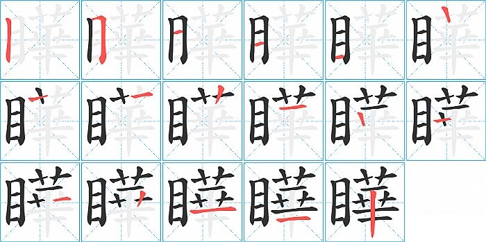 瞱是左右结构,瞱的部首是“目”,部外笔画10画,总笔画15画,瞱的笔画顺序是“竖、横折、横、横、横、横、竖、竖、横、横、竖、竖、横、横、竖”。看看“瞱”字什么意思 >>