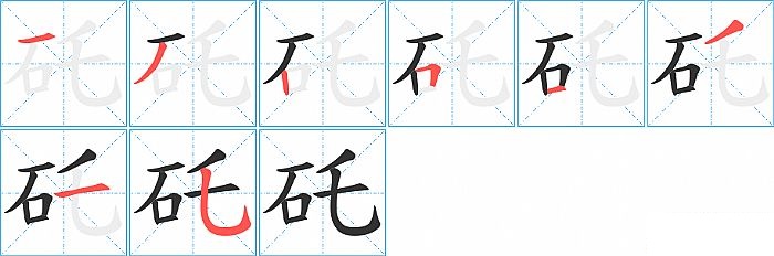 矺是左右结构,矺的部首是“石”,部外笔画3画,总笔画8画,矺的笔画顺序是“横、撇、竖、横折、横、撇、横、竖弯钩”。